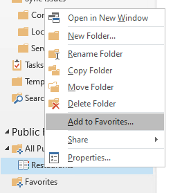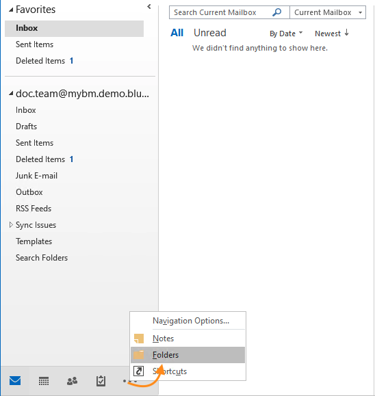 Öffentliche Ordner sind nur in der Ordneransicht sichtbar, die über die Schaltfläche "..." aufgerufen werden kann. am unteren Rand des Outlook-Fensters :