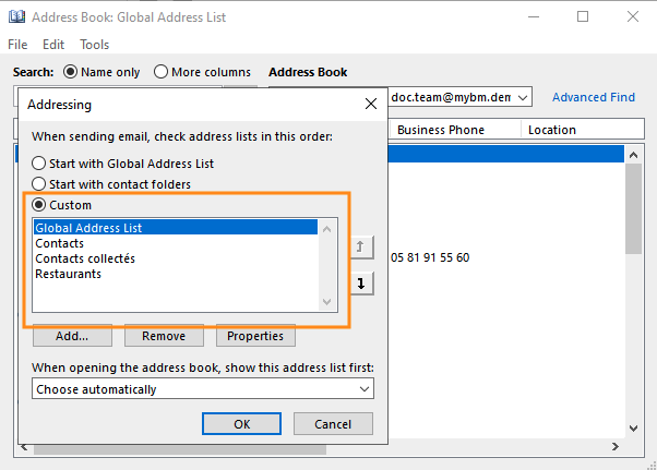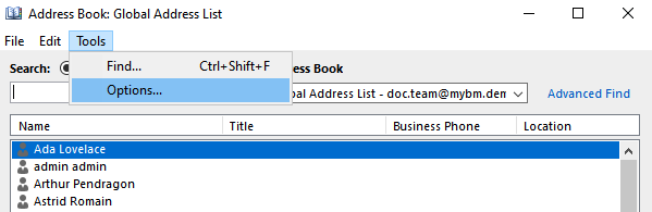 Die in diesem Feld aufgelisteten Notizbücher werden bei der Suche nach Adressen berücksichtigt. Die Liste enthält standardmäßig alle Notizbücher. Später erstellte Notizbücher werden automatisch von Outlook hinzugefügt, so dass es nicht notwendig ist, den Vorgang für jedes hinzugefügte Notizbuch zu wiederholen, wie in Teil 1 beschrieben.