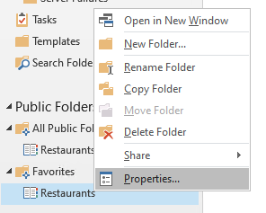 Klicken Sie dann mit der rechten Maustaste auf den Favoritenordner und wählen Sie "Eigenschaften..." :
