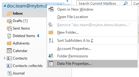 Zurück zur Hauptansicht, klicken Sie mit der rechten Maustaste auf den Kontonamen und wählen Sie "Datenendateieigenschaften..." :