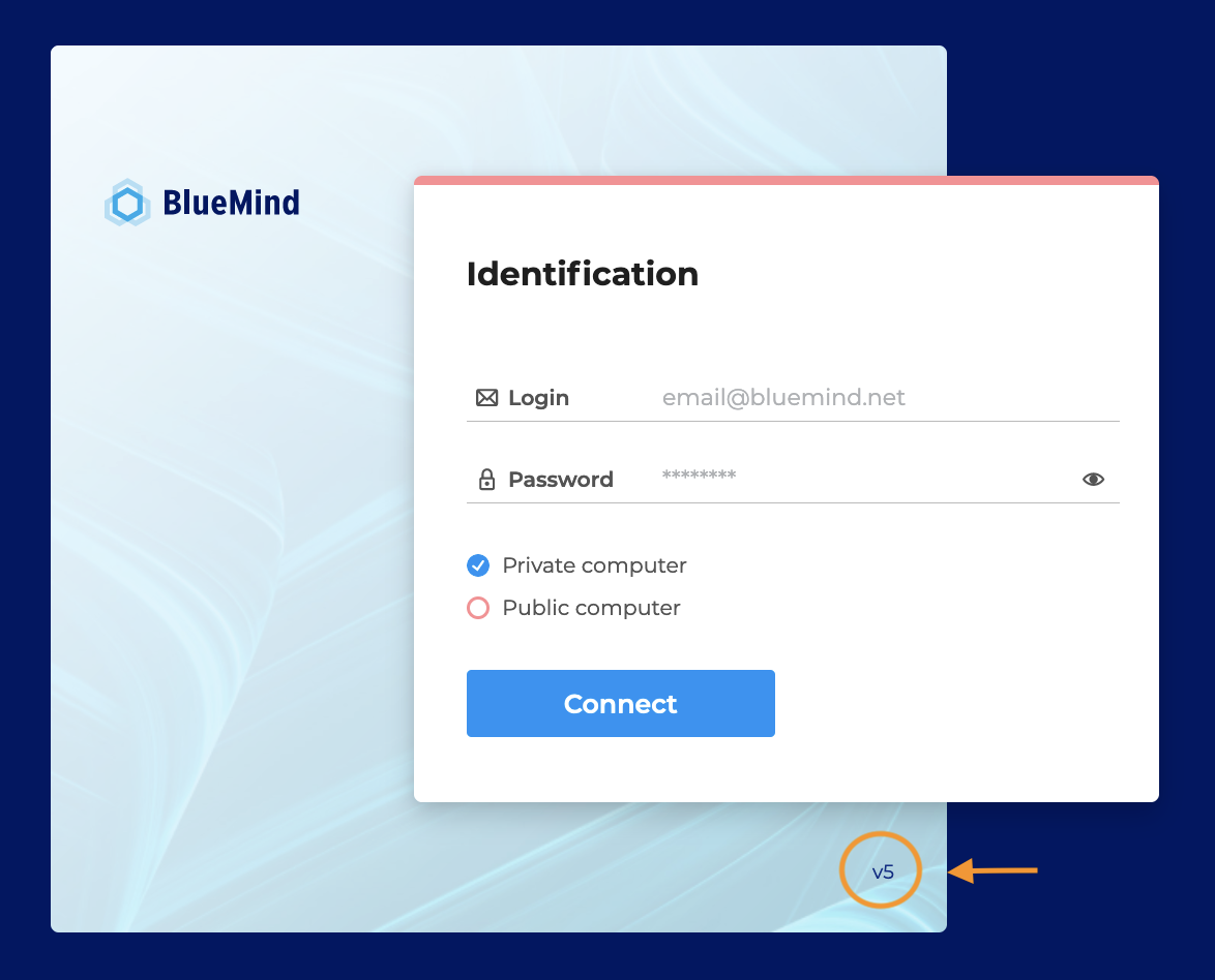 Die Version von BlueMind wird auf der Startseite der Anwendung angezeigt :