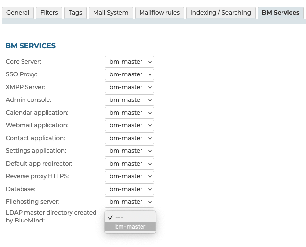 Wählen Sie den Server für den Dienst mit dem gleichen Namen "BlueMind Master LDAP Directory":