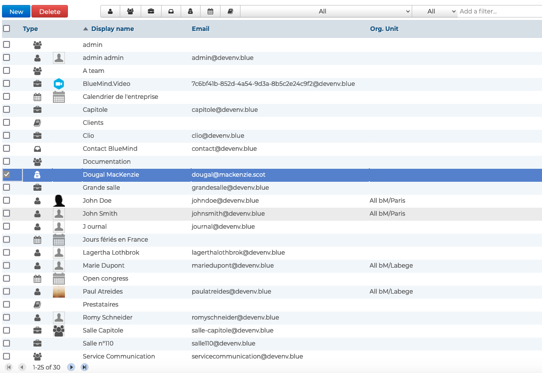 Externe Benutzer sind Benutzer ohne eigenes Konto in BlueMind, wie herkömmliche Benutzer, aber mit einer externen E-Mail-Adresse für BlueMind. Benutzer dieses Typs können zu BlueMind-Gruppen hinzugefügt werden, um an sie gerichtete Nachrichten zu erhalten.