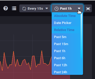 Zwei Dropdown-Listen in der oberen rechten Ecke jeder Übersicht ermöglichen es Ihnen, die Aktualisierungszeit und den Zeitraum, der angezeigt werden soll, zu ändern (oder zu fixieren):
