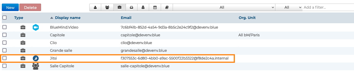 ⇒ Eine Ressource mit dem Namen "Jitsi" wird automatisch erstellt und im Verzeichnis sichtbar. Dies ermöglicht es den Nutzern, automatisch Videokonferenzen zu erstellen. Weitere Informationen finden Sie im Abschnitt Zugriffsrechte (optional)