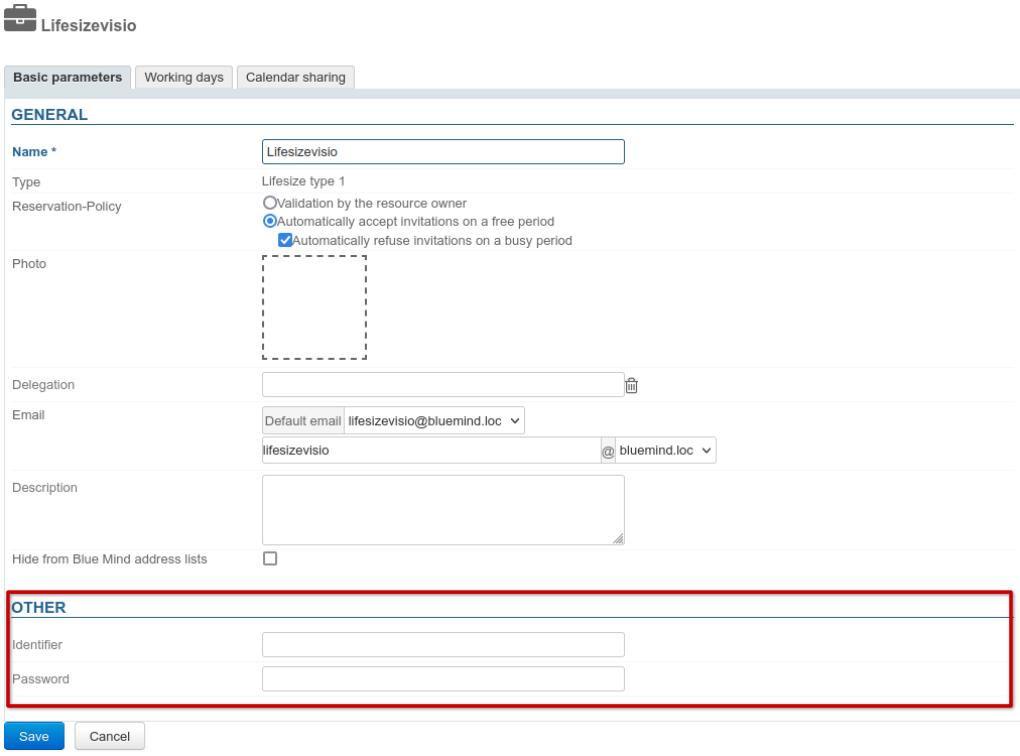 En tant que ressource, il est possible de lui attribuer des heures ouvrées ou encore une politique de réservation. Cependant le lien généré étant unique, cela n'aura pas d'incidence sur la disponibilité de la visioconférence en elle-même : le lien sera malgré tout actif et disponible en dehors de ces horaires.