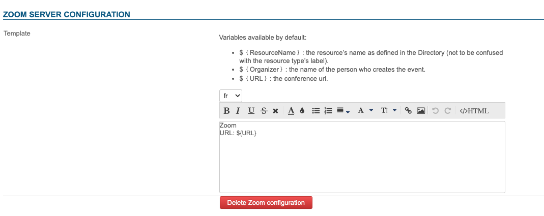 https://zoom.us/oauth/authorize. - Application ID : fournie par Zoom, récupérée lors de la configuration de Zoom
