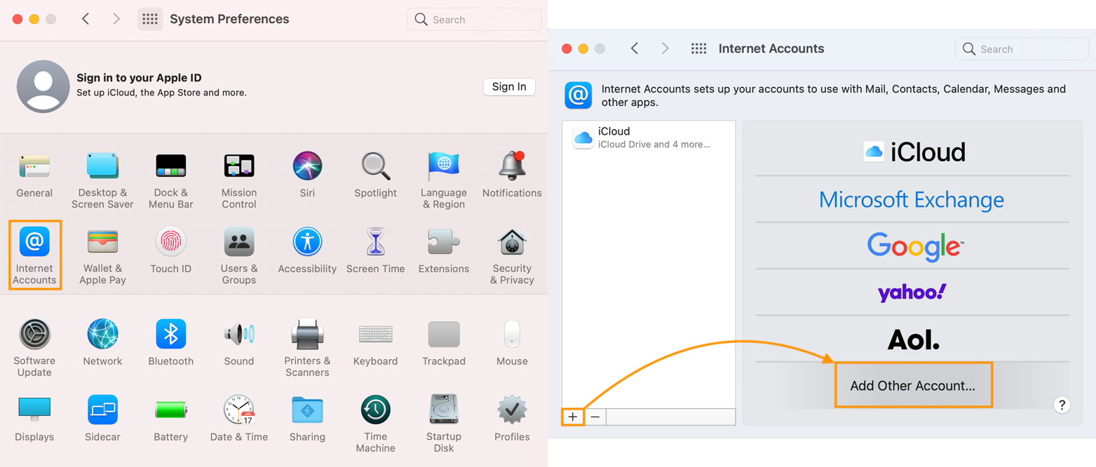 Das Hinzufügen eines Kontos erfolgt in den Systemeinstellungen :