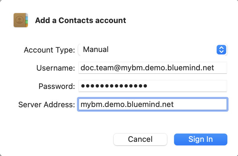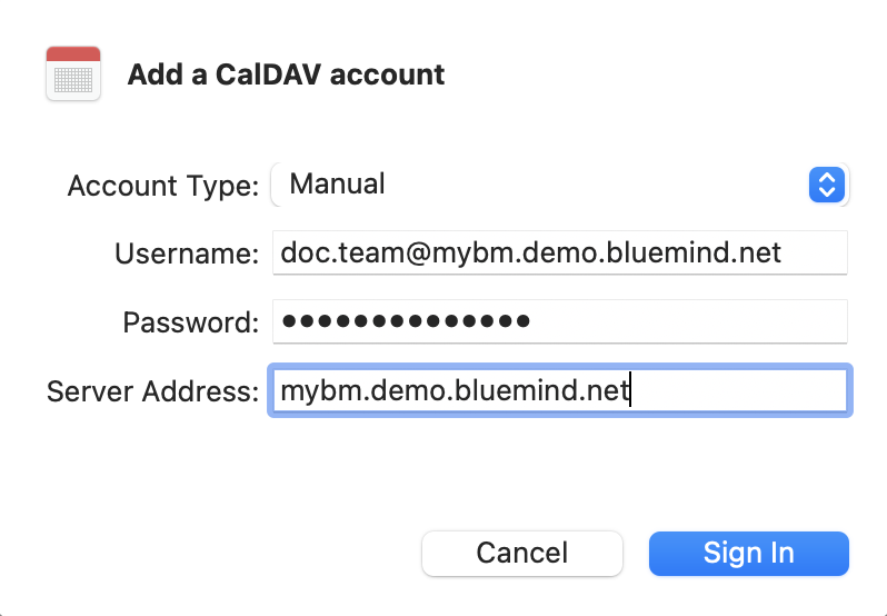 - Kennwort: Das Kennwort, das vom Administrator bereitgestellt wurde und mit dem Sie sich bei BlueMind anmelden können.