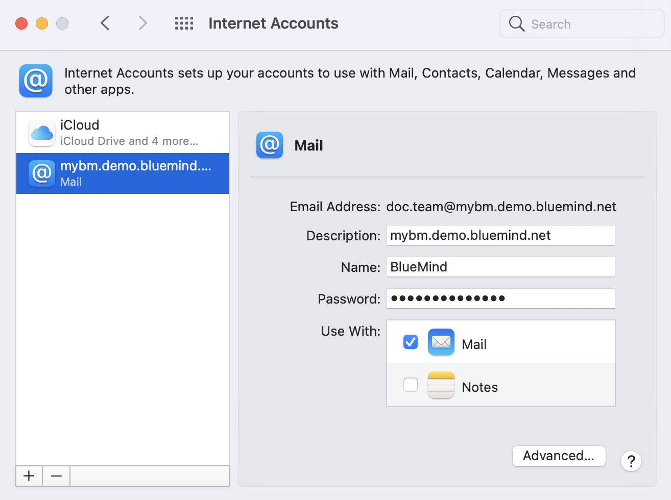 Wenn der Server die Verbindung verweigert, überprüfen Sie mit dem Administrator, ob nicht ein Verbot der Verbindung ohne doppelte Authentifizierung eingerichtet wurde. Weitere Informationen finden Sie unter Benutzer bearbeiten > Passwort . - Wählen Sie die Anwendung Mail: