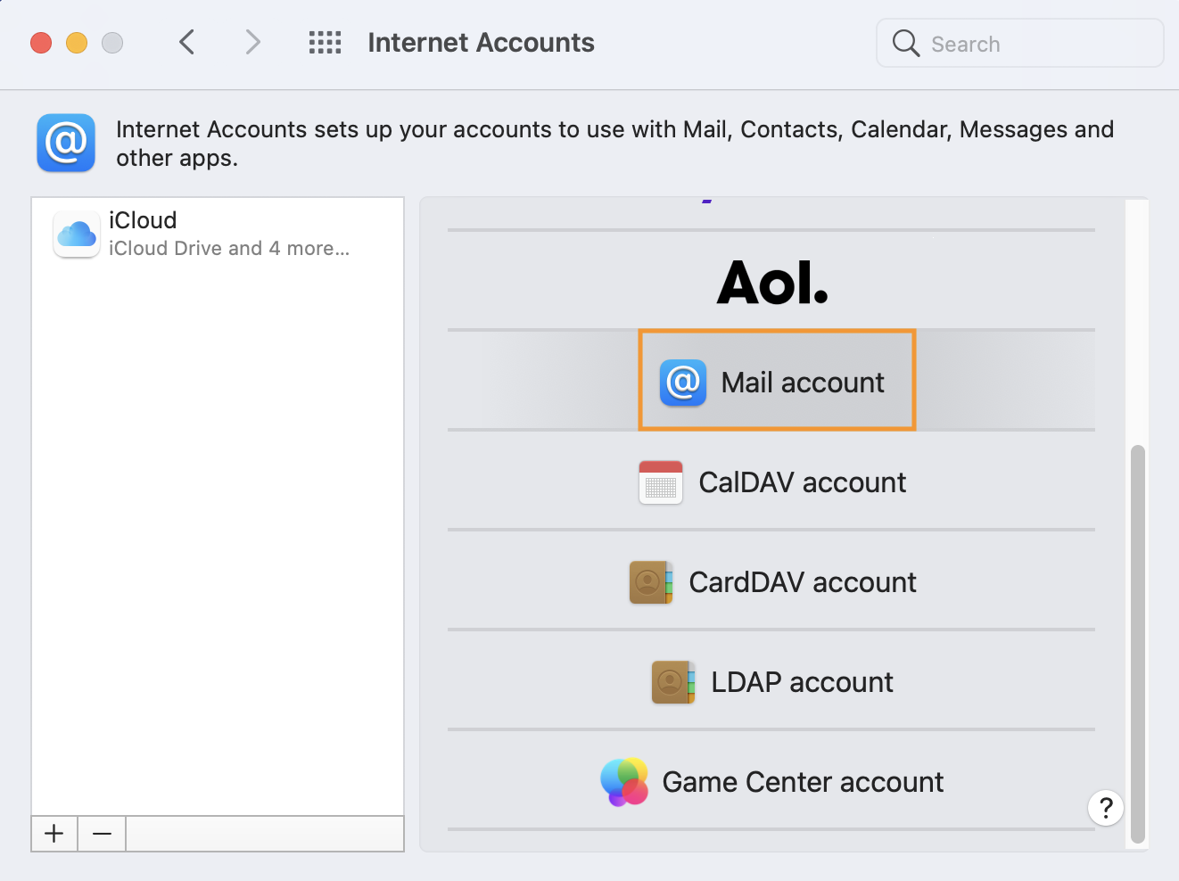 - Wählen Sie "Mailkonto":