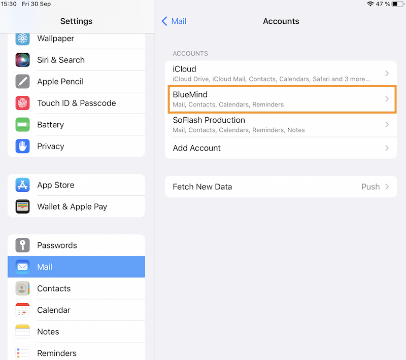 Synchronisierung von BlueMind-Kontakten auf dem iOS-Gerät