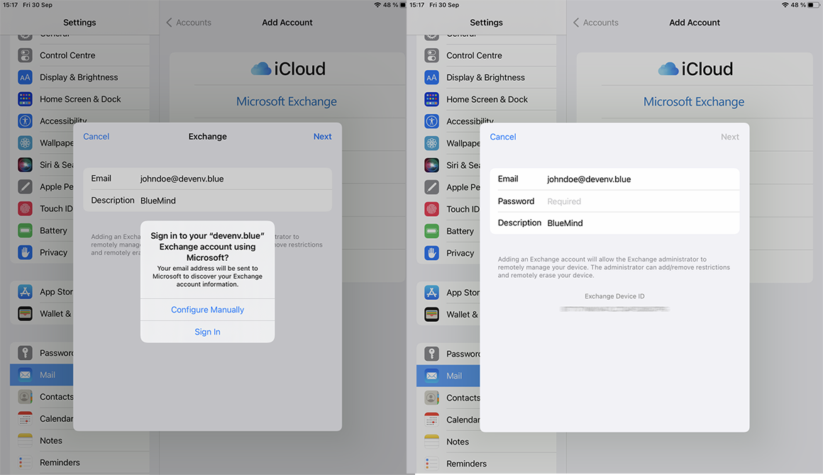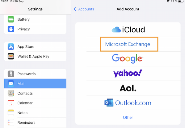 Wählen Sie, ob Sie ein Konto vom Typ Exchange hinzufügen möchten: