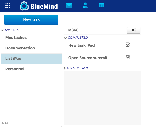 Alle Änderungen, neuen Aufgaben, neuen Aufgabenlisten werden unmittelbar synchronisiert und in BlueMind sichtbar: