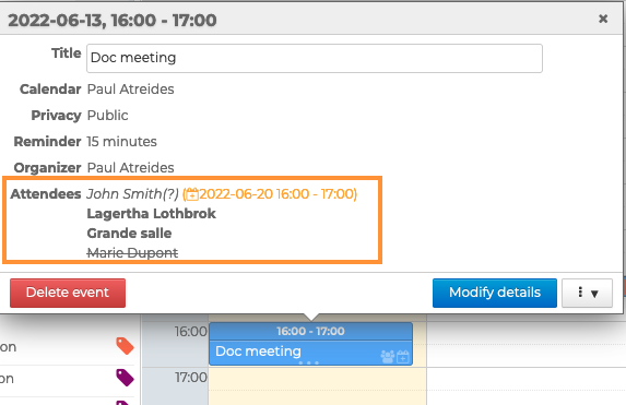 - alle Teilnehmer erhalten eine E-Mail mit der Änderung des Ereignisses.