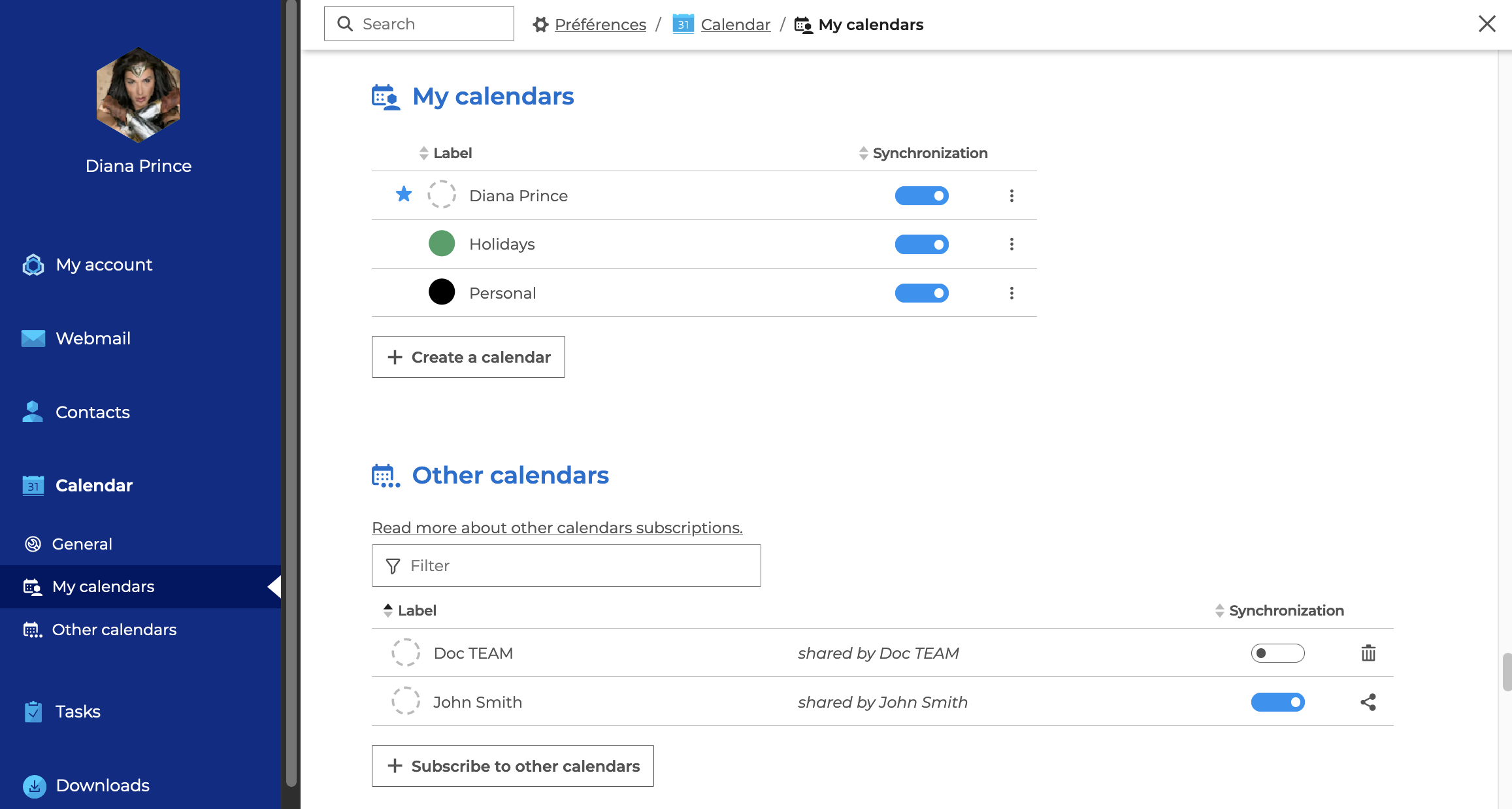 Aktivieren Sie dann die Schaltfläche "Synchronisieren" der gewünschten Kalender: