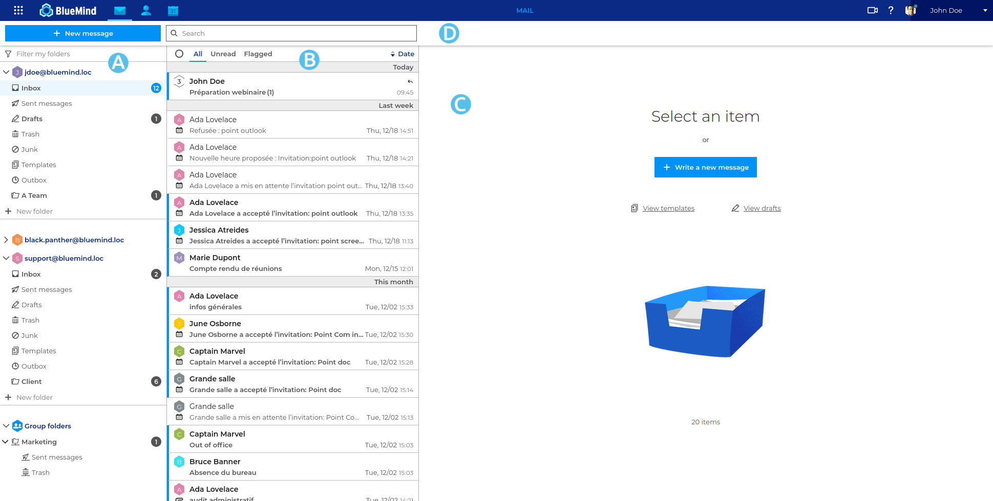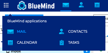 Der Zugriff auf den Posteingang erfolgt über die Hauptnavigationsleiste von BlueMind.
