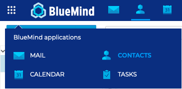Der Zugriff auf die Anwendung "Kontakte" erfolgt über die Hauptnavigationsleiste von BlueMind.