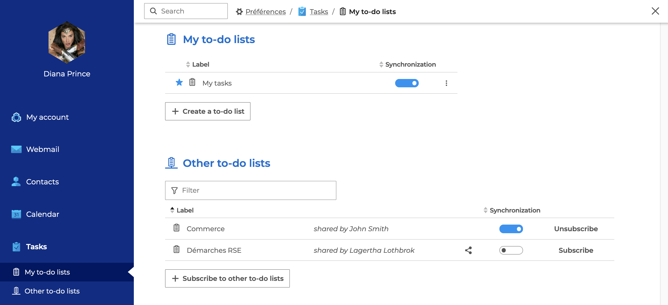 MAPI-Synchronisierung (Outlook) : Es ist möglich, sich in Outlook für eine Aufgabenliste zu abonnieren. In diesem Fall wird die Liste automatisch zu BlueMind hinzugefügt, wobei die Synchronisation aktiviert ist