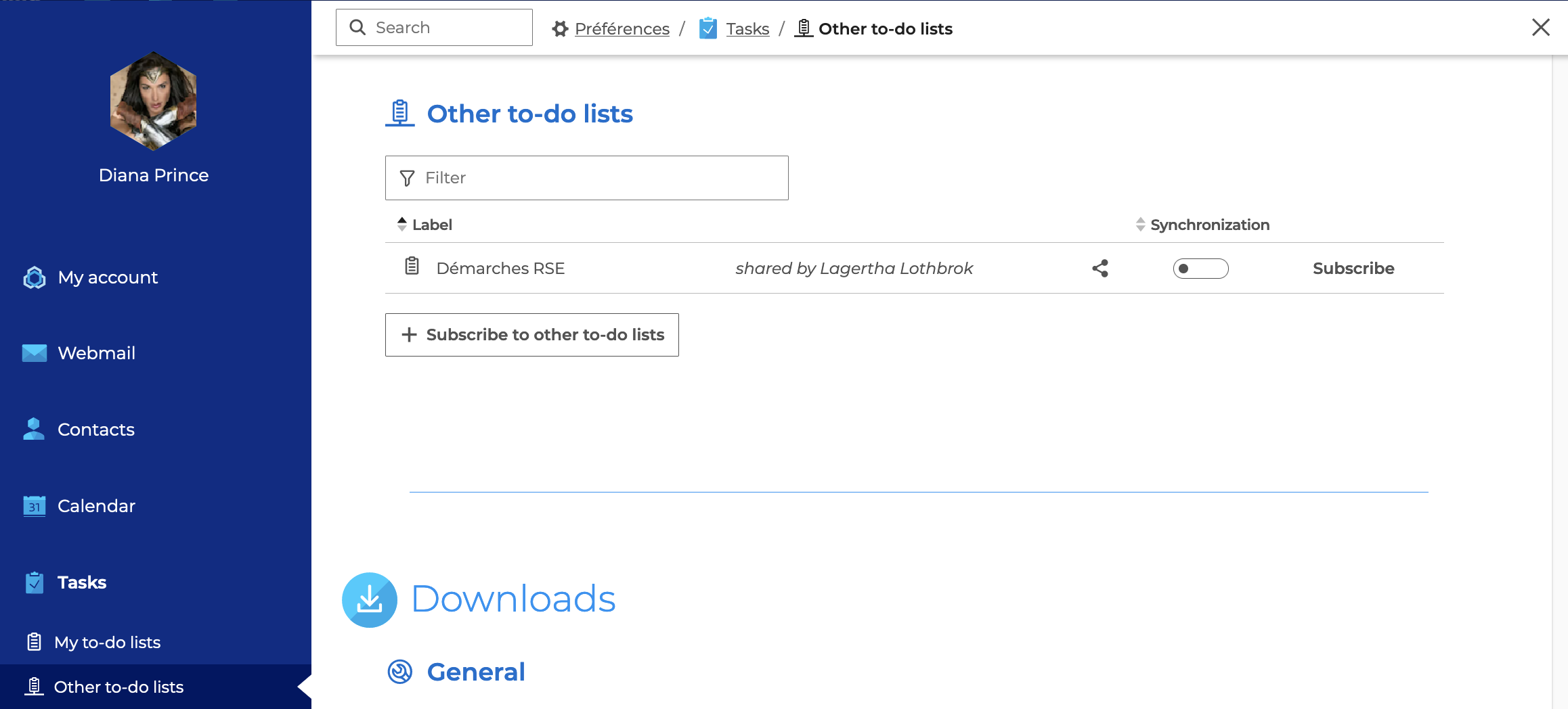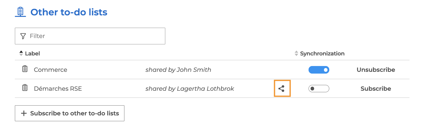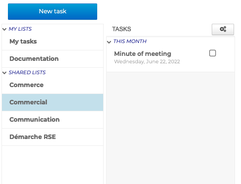 Nach Bestätigung des Abonnements erscheint die Aufgabenliste in den geteilten Aufgabenlisten (linke Spalte) :