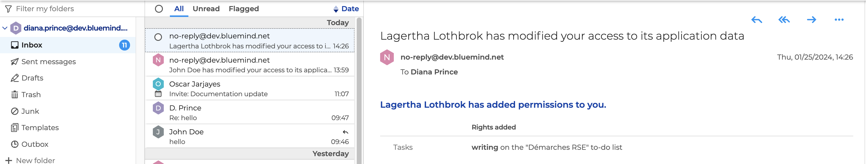 Wenn ein Benutzer Zugriffsrechte für seine Aufgabenliste erteilt, erhält der Benutzer, dem die Freigaberechte zugewiesen wurden, eine Benachrichtigung per E-Mail :