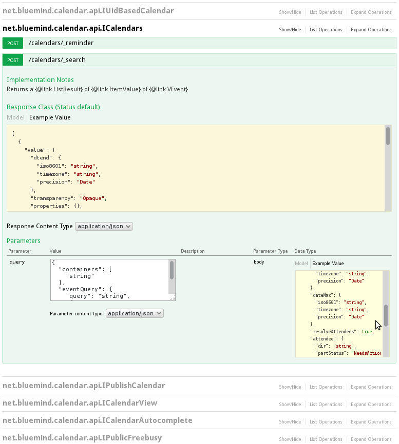 Eine interaktive Dokumentation unserer REST API ist im Installer enthalten: das optionale Paket bm-docs. Une fois celui-ci installé, la documentation de l'API REST sera accessible aux utilisateurs disposant du rôle “Intégration APÏ docs”. Cette documentation est également publiée dans l'espace BlueMind Docs.