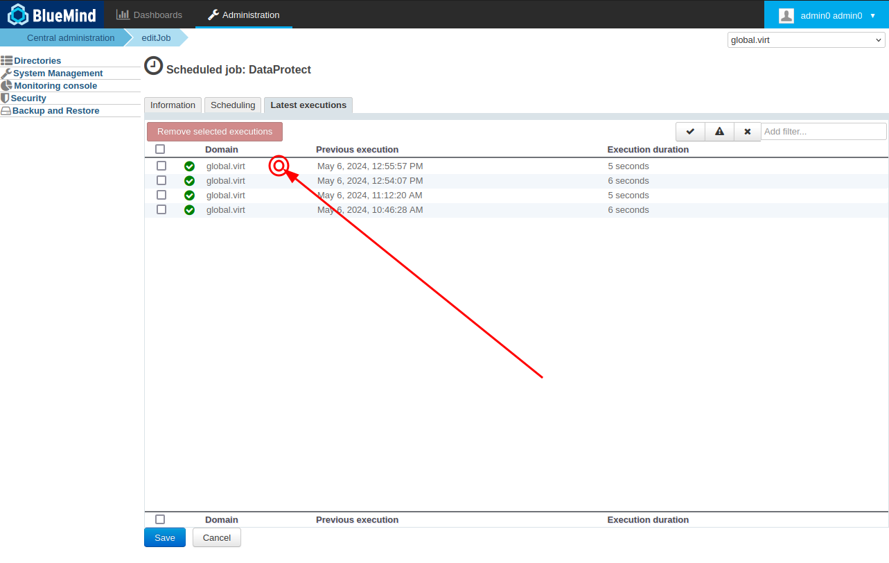 Gehen Sie auf die Registerkarte Letzte Hinrichtungen: