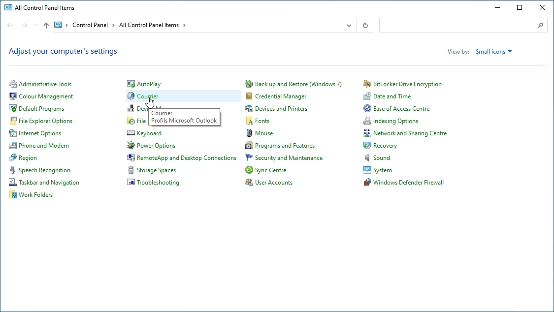 Je nach Outlook- und/oder Windows-Version kann es sein, dass die Option "Profile verwalten" in diesem Menü nicht vorhanden ist. In diesem Fall gehen Sie in die Systemsteuerung von Windows und wählen "E-Mail" ("Mail" kann auch auf französischen Systemen erscheinen):