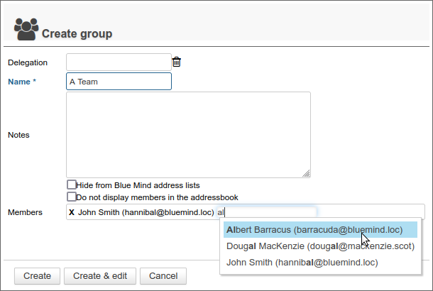Click on « Create » for a simple and direct group creation or click on « Create & Edit » to create the group and access configuration options.
