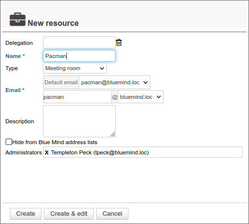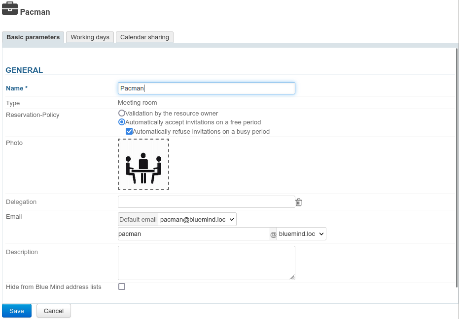 BlueMind allows you to manage calendars for resources (vehicles, rooms, video-projectors, etc.) the same way you would manage user or group calendars.