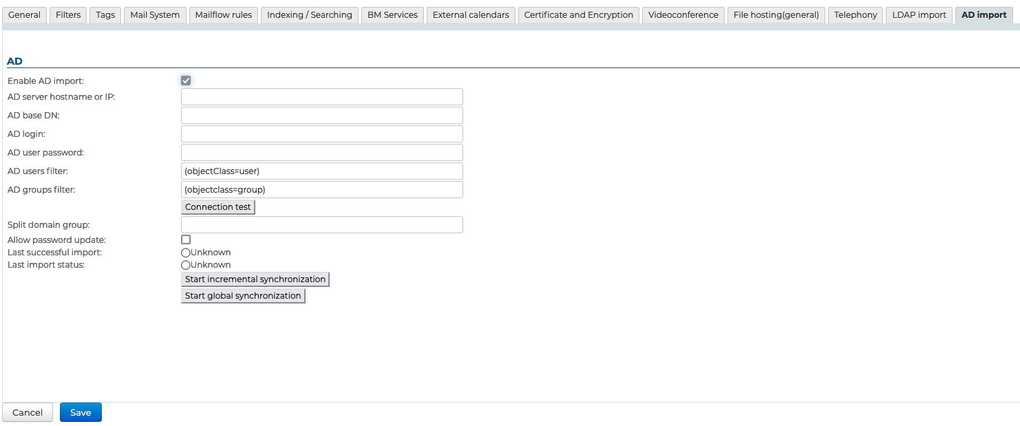 To access the synchronization features with an AD directory, it is necessary to install the ad-import plugin.