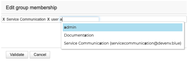 To delete a group, click on the corresponding cross; to add one, enter the first letters and validate a choice of those proposed by autocomplete. - Do not display members in the address book: the user can be a member of a group but their card will not appear in the directory - this option is active by default, it can be deactivated/reactivated at any time later