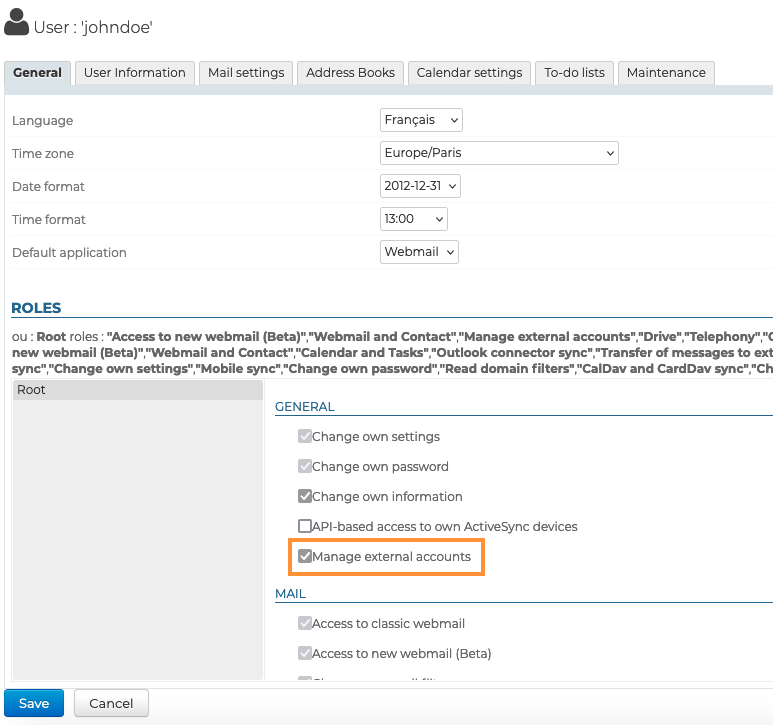 To enable users to access this feature, they must be authorized to connect an external account to their BlueMind account.