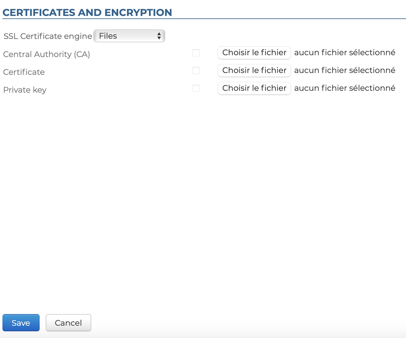 - Choose the SSL certificate engine : Files or Let's Encrypt