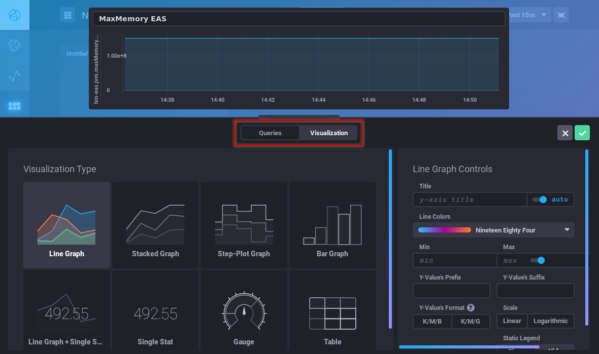 The "Visualization" button is used to choose a graphic type and customize it: