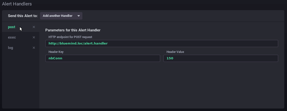 - Alert handlers: managers have to do Add thanks to the list of one or more alert recipients: