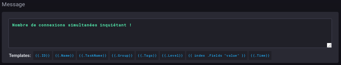 - Message: the message to write or send via the handler(s) specified above:
