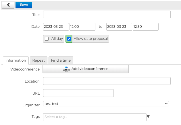 Pour en savoir plus sur le fonctionnement, se reporter à la page de documentation du guide utilisateur : Lier une visioconférence à un événement.