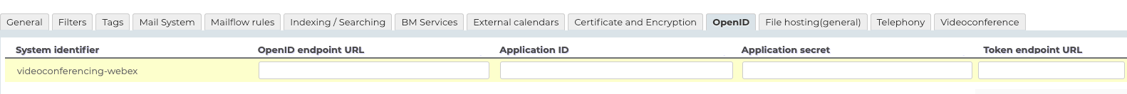 The "Redirect URL" parameter must match the URL https://<external-url-bluemind>/bm-openid/auth/videoconferencing-webex.