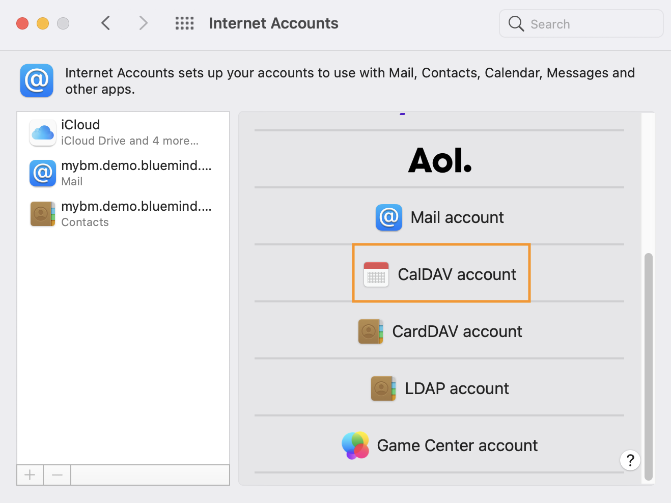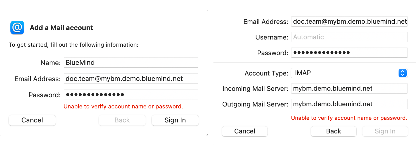 You need to create an account for each application. You need to create an account for each application. To use all BlueMind applications, you need to create 3 accounts: Mail, Calendar and Contacts