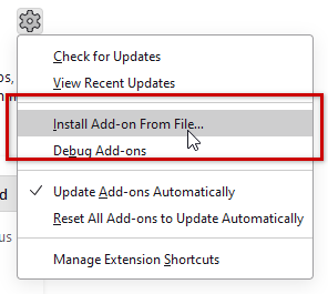 drag the downloaded .xpi file from the file explorer into Thunderbird's main window (this may take a few seconds) or choose to install a new module from the module tools menu:
