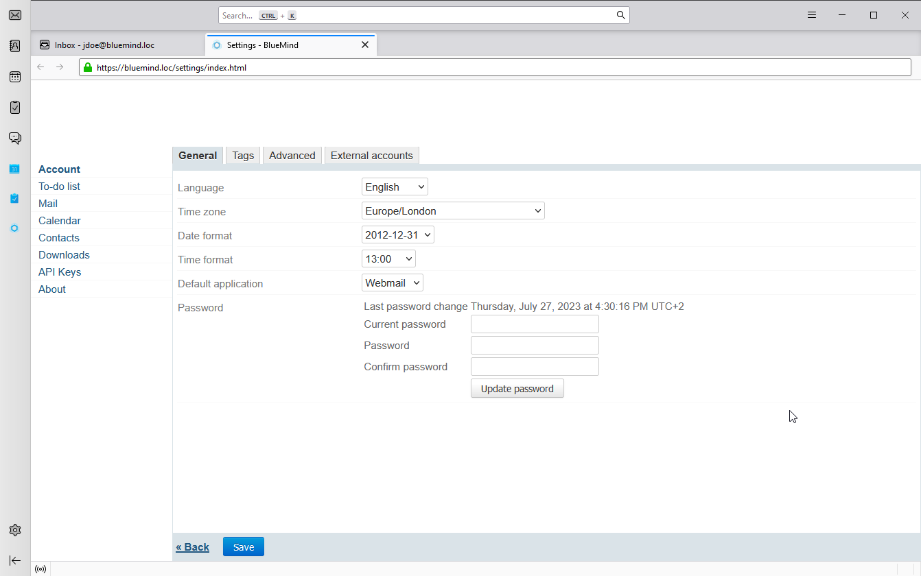 - Go to Managing BlueMind preferences