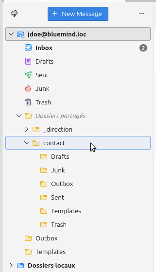 BlueMind's subscription feature (see Subscribing to a shared mailbox) makes it possible to display shared mailboxes on Thunderbird.