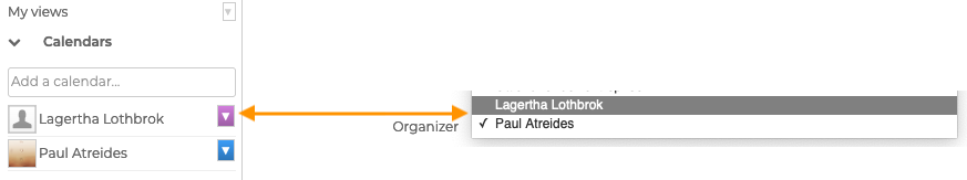 The "Organizer" field is used to select the calendar the event will be added to and that will be used to send meeting invitations.