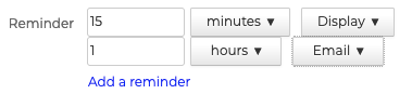 The reminder: by default, the reminder will be as defined in agenda settings but can be modified for each event : click on the cross to delete a notification and on "Add an alert" to create one or more new ones