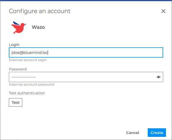 - Once username and password have been entered in the usual form, BlueMind presents the configuration page: