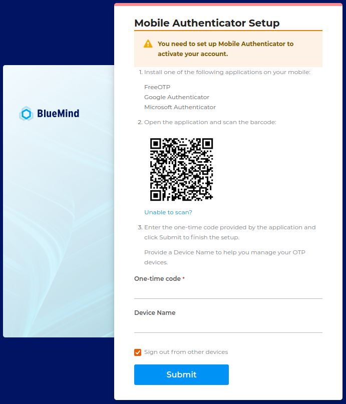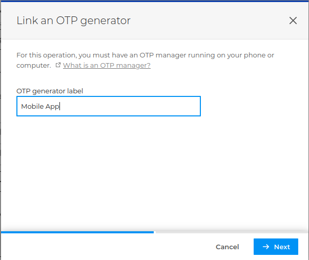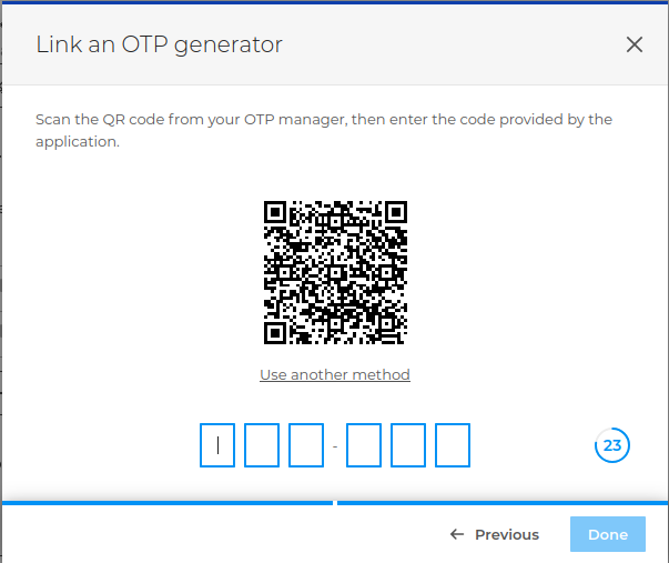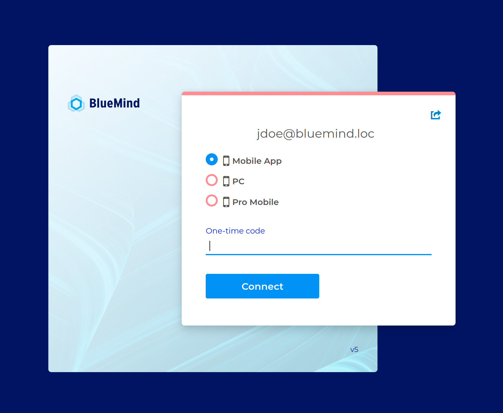 When OTP security is enabled, BlueMind automatically proposes a key for the next connection: