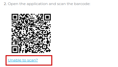 💡 If the proposed QR Code cannot be scanned (no device available, use on the mobile itself, user's choice, etc.), click on "Unable to scan? :