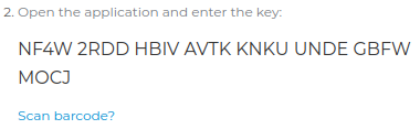 - In return, the application supplies a single-use code; enter this code in the appropriate field: