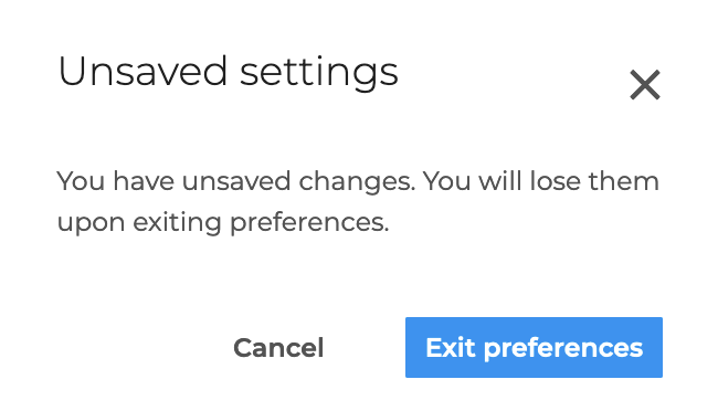 If the user clicks on the close cross to quit preference management, confirmation is requested if any changes have not been saved :